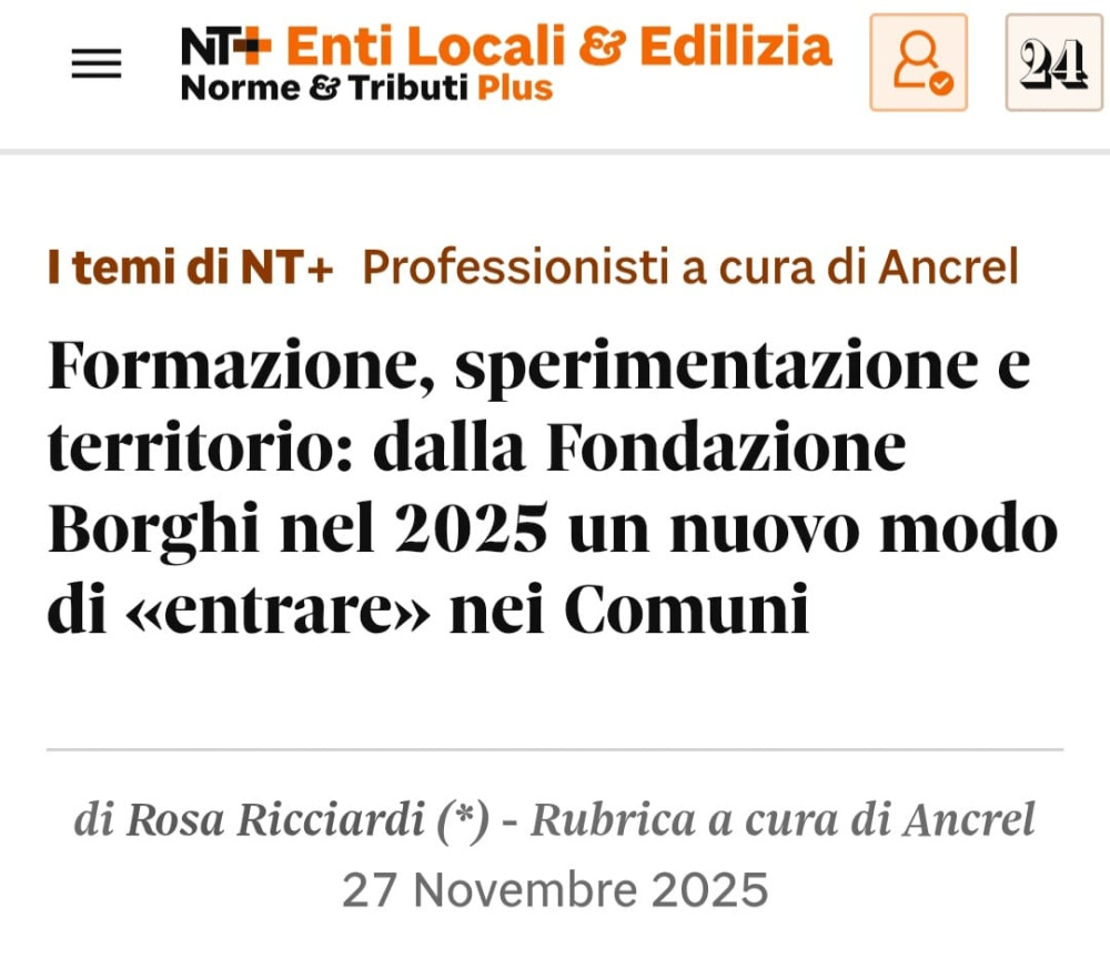 Formazione, sperimentazione e territorio: dalla Fondazione Borghi nel 2025 un nuovo modo di «entrare» nei Comuni | NT+ Enti Locali & Edilizia